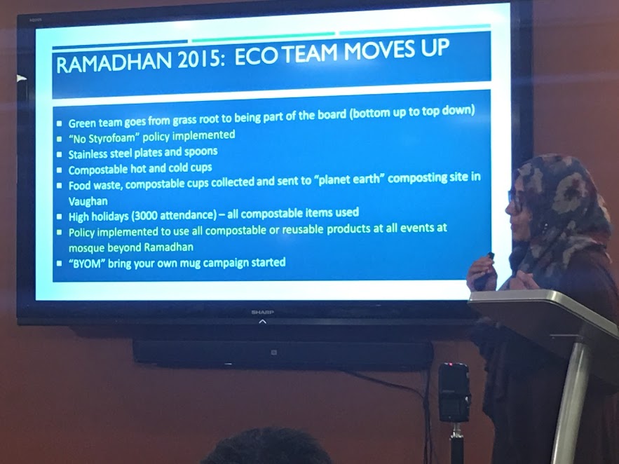 The evening’s program was moderated by Muaz Nasir of Khaleafa.com and included presentations by Shoresh‘s Sabrina Malach, Jaffari Goes Green‘s Aziza Amarshi-Meghjee, and Holy Trinity Anglican Church Thornhill‘s Iverson Grimes on how their faith community is responding to climate change.