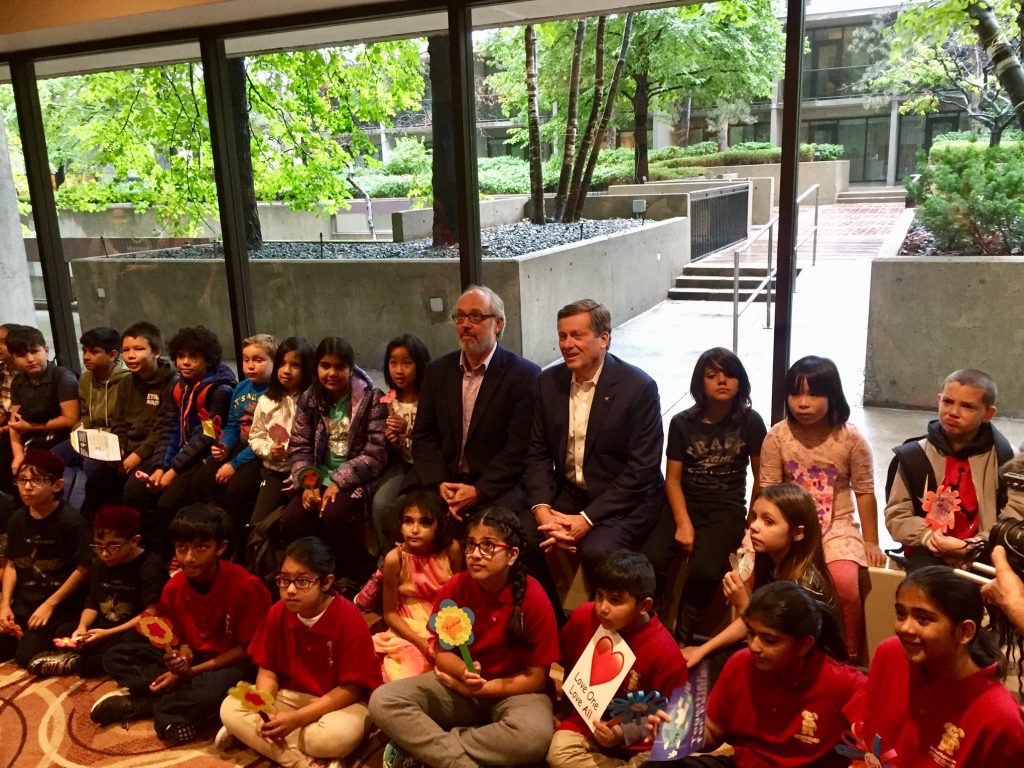 Toronto Mayor John Tory, Councilor Joe Mihevc and PoWR Toronto 2018 Board Co-chairs Karen Hamilton and Zul Kassamali joined the children.