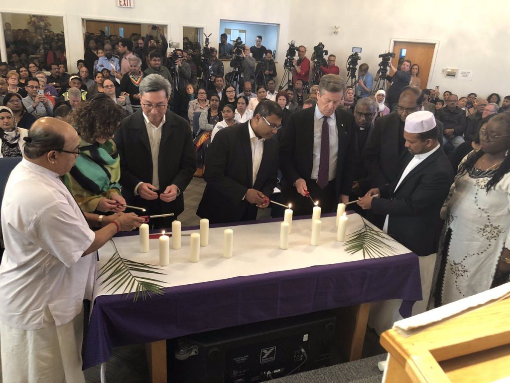 At an earlier multi-faith vigil held on Monday, April 25, 2019 at the Malvern Methodist Church in Scarborough, Irshad Osman, Imam of the Danforth Islamic Centre representing the Sri Lankan Muslim Community said, “We have to combat hate in Canada and around the world, wherever we have influence, and we have the obligation to confront, head on, those who harbour and/or propagate hate, be it a white, black, or brown supremacist.”