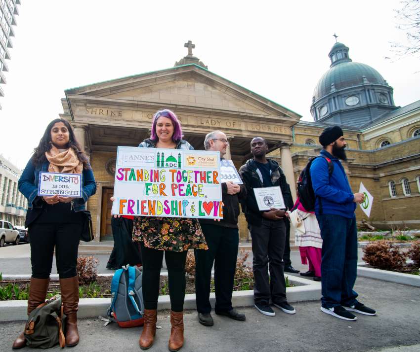 “A human ‘Ring of Peace’ conveys the message that we stand together to guard a sacred place of worship,” said Imam Shabbir Ally at a Ring of Peace and Interfaith Vigil held at Our Lady of Lourdes Church in Toronto’s St. Jamestown neighborhood on Thursday, April 25, 2019. “As we stood in front of this church today, our message to any would be attacker is that we are here to defend this church, you dare not attack this church while were are here.”