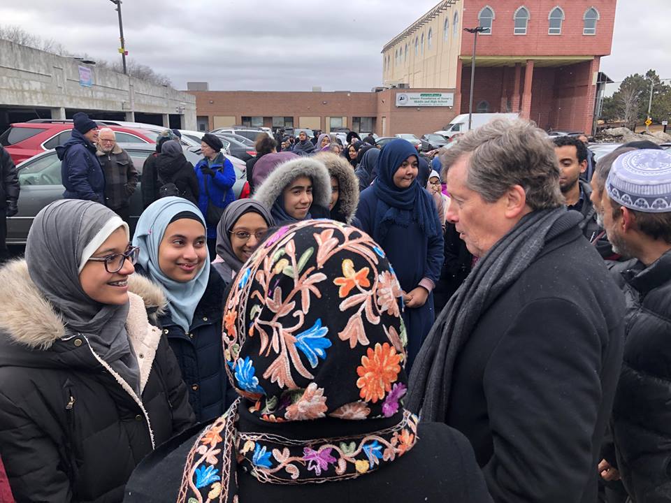 Toronto Mayor John Tory joined a ‘ring of peace’ ceremony at the Islamic Foundation of Toronto, one of the city’s oldest mosques and largest congregations.