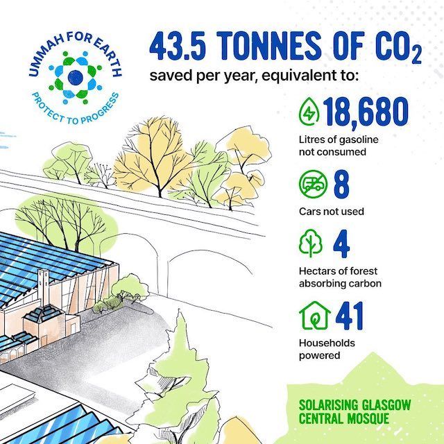 Glasgow Central Mosque is delighted to be part of a major Greenpeace MENA ‘Greening Mosques’ initiative, in solarising to drive down its carbon emissions@IslamicReliefUK@GreenpeaceAR#Cop26 #ClimateChange #TogetherForOurPlanet pic.twitter.com/Z4NaOspDDz