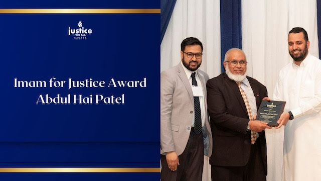 The Imam for Justice Award honoured Imam Abdul Hai Patel for his consistent and fearless education on global justice and human rights through presentations, Khutbas, and advocacy.