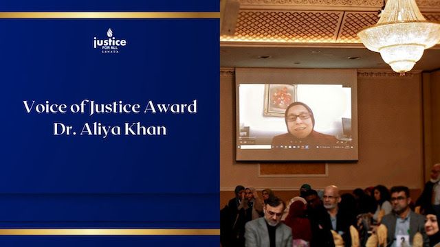 Voice of Justice Award honoured Dr. Aliya Khan for her relentless advocacy and coalition building for Uighur human rights and global justice.