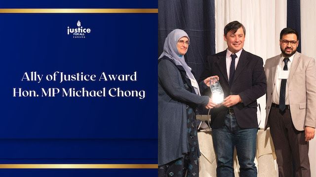 The Ally of Justice Award honoured Hon. MP Michael Chong as a politician or ally standing up for a human rights cause beyond just issuing statements.