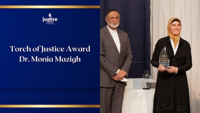 The Torch of Justice Award honoured Dr. Monia Mazigh for her outstanding leadership, speaking, and writing on global human rights.