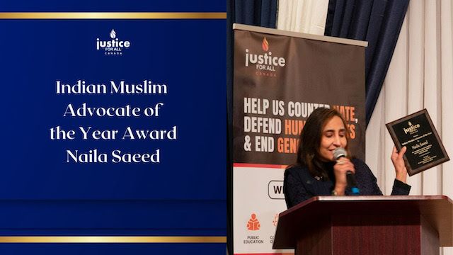 The Indian Muslim Advocate of The Year Award honoured Naila Saeed, for her courageous awareness-building and advocacy of the plight of Indian Muslims.