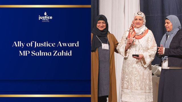 The Ally of Justice Award honoured Hon. MP Salma Zahid as a politician or ally standing up for a human rights cause beyond just issuing statements.
