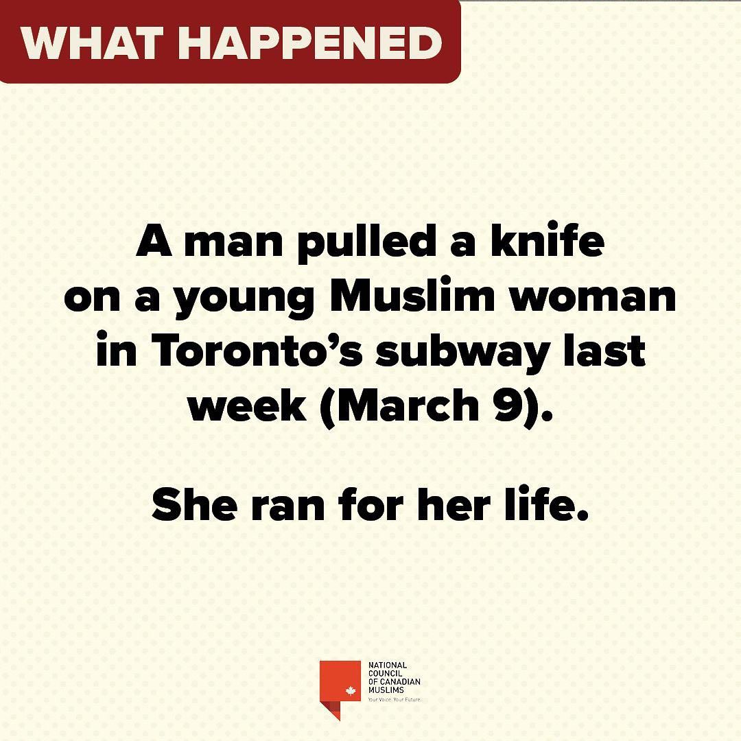 On March 9th, a young Muslim woman was riding Toronto's subway near the Vaughan area when a man pulled a knife on her.