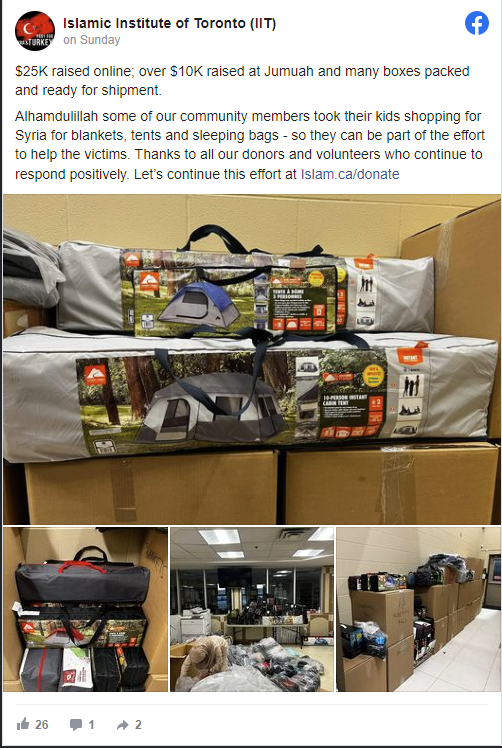 "It's heartening to see Canadian Muslim communities banding together to provide support to those in need, both through physical supplies and donations."