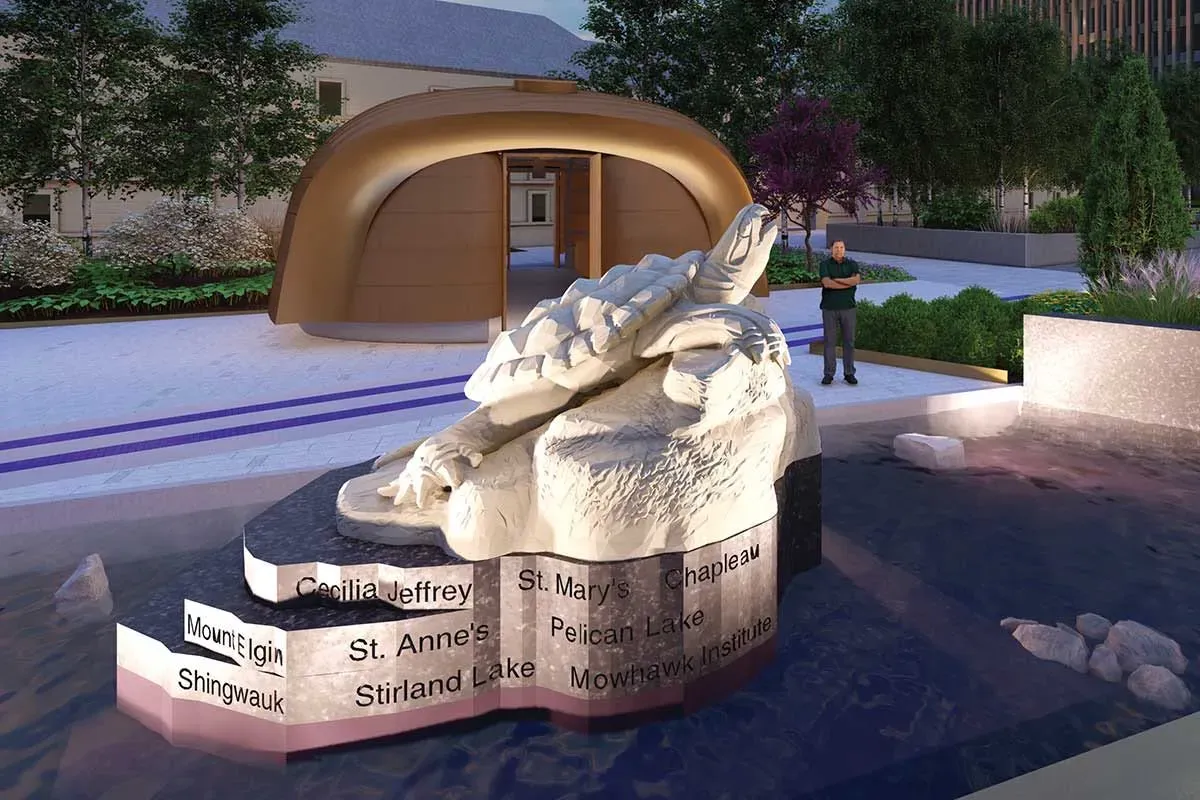 Nathan Phillips Square was selected as a publicly accessible, highly visible location to celebrate the resilience of survivors and their families with space for teaching, learning, sharing and healing.