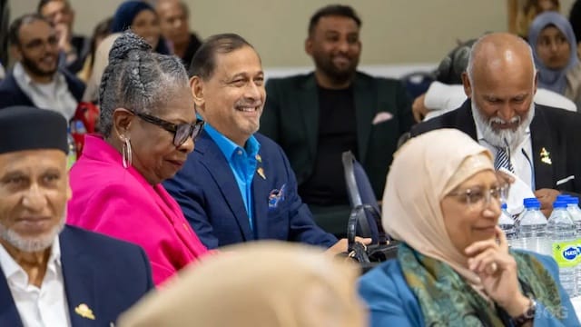The evening concluded with a special tribute recognizing three distinguished Guyanese for their decades of community service and leadership: Imam Meer Lakha, Imam Abdool Haleem Hack, and Professor Mohamed Kayume Khan.