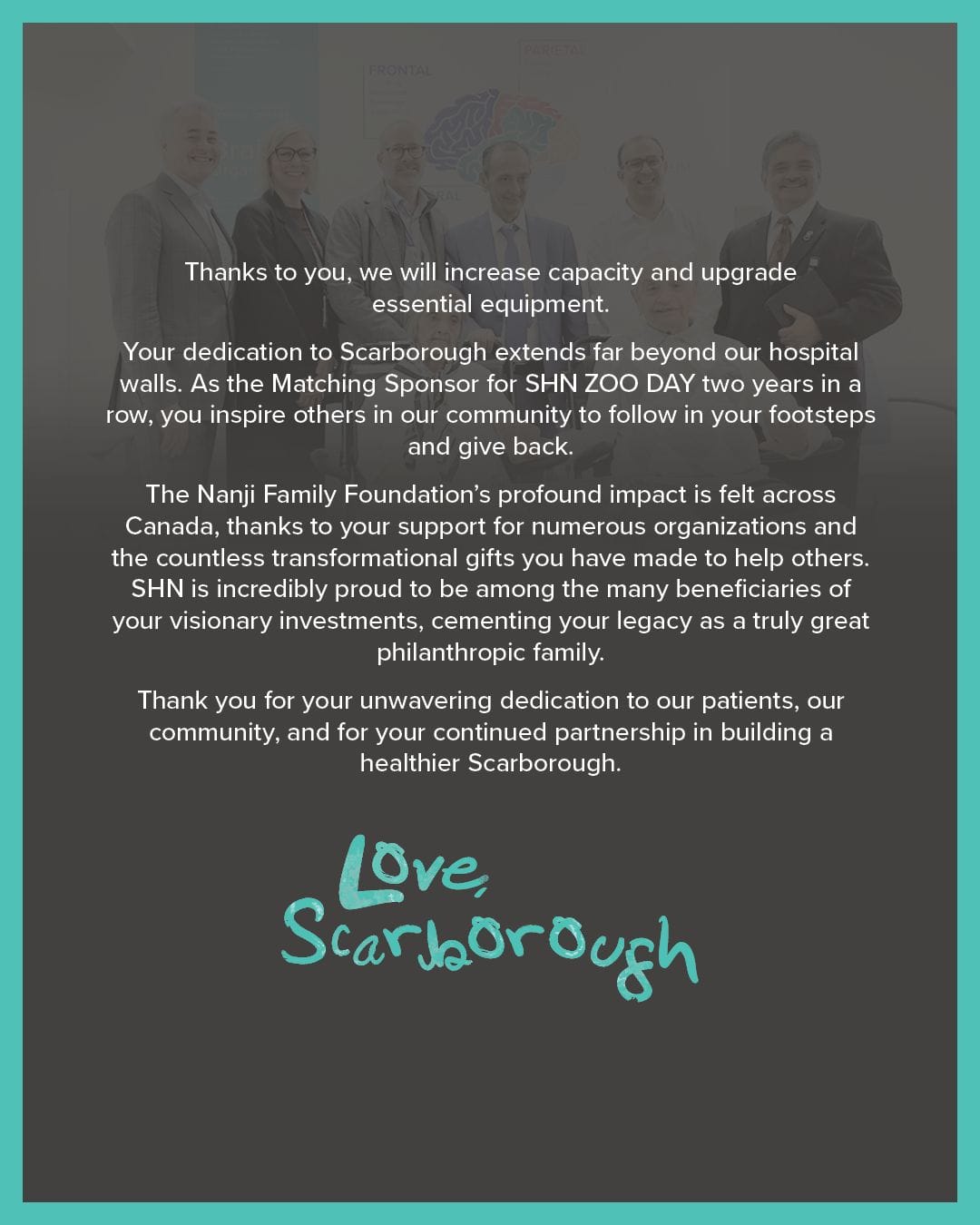 "From Scarborough to communities across Canada, the Nanji Family Foundation’s legacy of giving is truly extraordinary," SHN expressed in a statement. "Thank you for believing in SHN, in our patients, and in a stronger future for all."