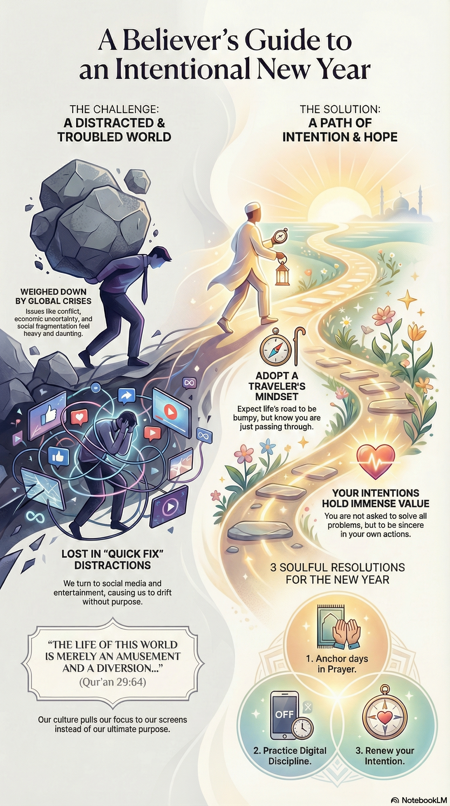We do not know what the new year will bring to the global stage, but we do know who holds the future. By living each moment with an eye on the Hereafter, we find the hope necessary to navigate the present.