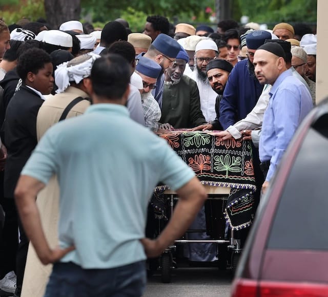 As reported by Jennifer Pagliaro of the Toronto Star, hundreds gathered at the Spiritual Society Canada mosque for Abdoul Aziz's funeral.